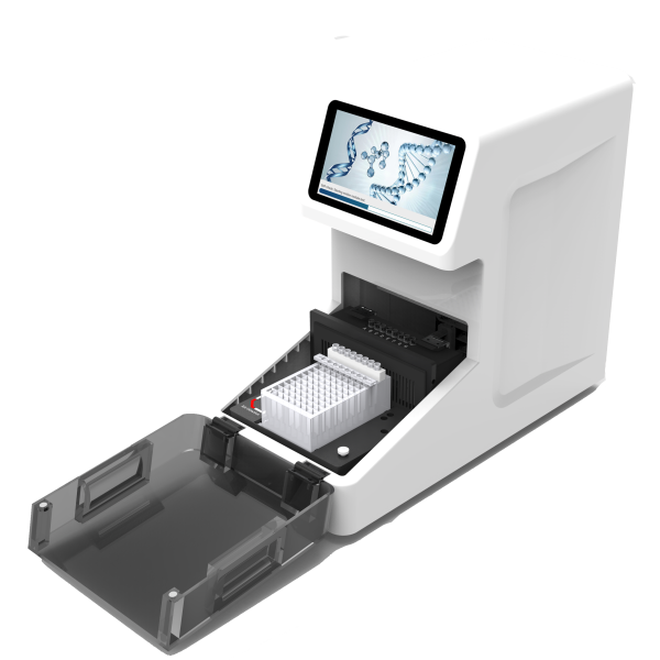 Fully automated instrument for up to 8 samples, integrating nucleic acid extraction and PCR amplification in a single compact device.
